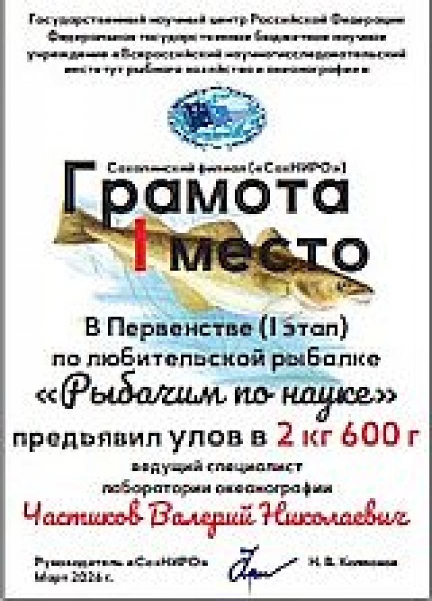 В Сахалинском филиала ГНЦ РФ «Всероссийский НИИ рыбного хозяйства и океанографии» (ВНИРО) провели I этап Первенства по любительской рыбалке «Рыбачим по науке»