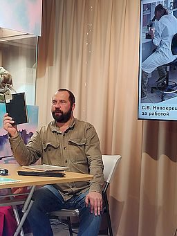 Им был представлен обширный обзор изданий по паразитологии . в том числе и раритетных. Он познакомил участников лектория с основоположниками паразитологии как науки в России, СССР так и на Сахалине. Эмоционально были встречены студентами контейнеры с видами гельминтов.