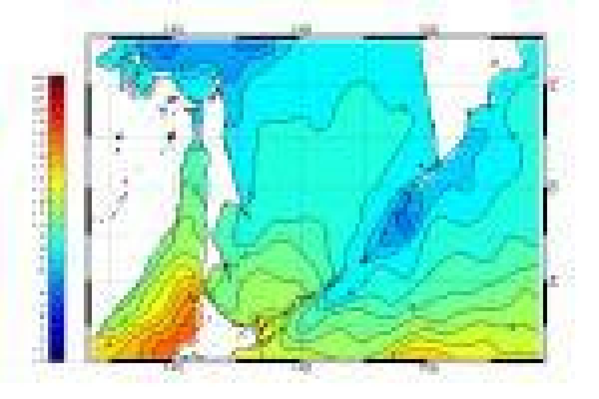 У западного побережья Сахалина температура поверхности воды была в пределах нормы, за исключением прибрежной зоны в районе м. Ламанон, где наблюдались отрицательные аномалии температуры поверхности воды до 2°С.