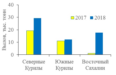 По информации судовых суточных донесений отраслевой системы мониторинга Росрыболовства, вылов морских промысловых рыб в январе-феврале в Сахалино-Курильском регионе в 2018 г. превышает показатели прошлого года (рис. 1).