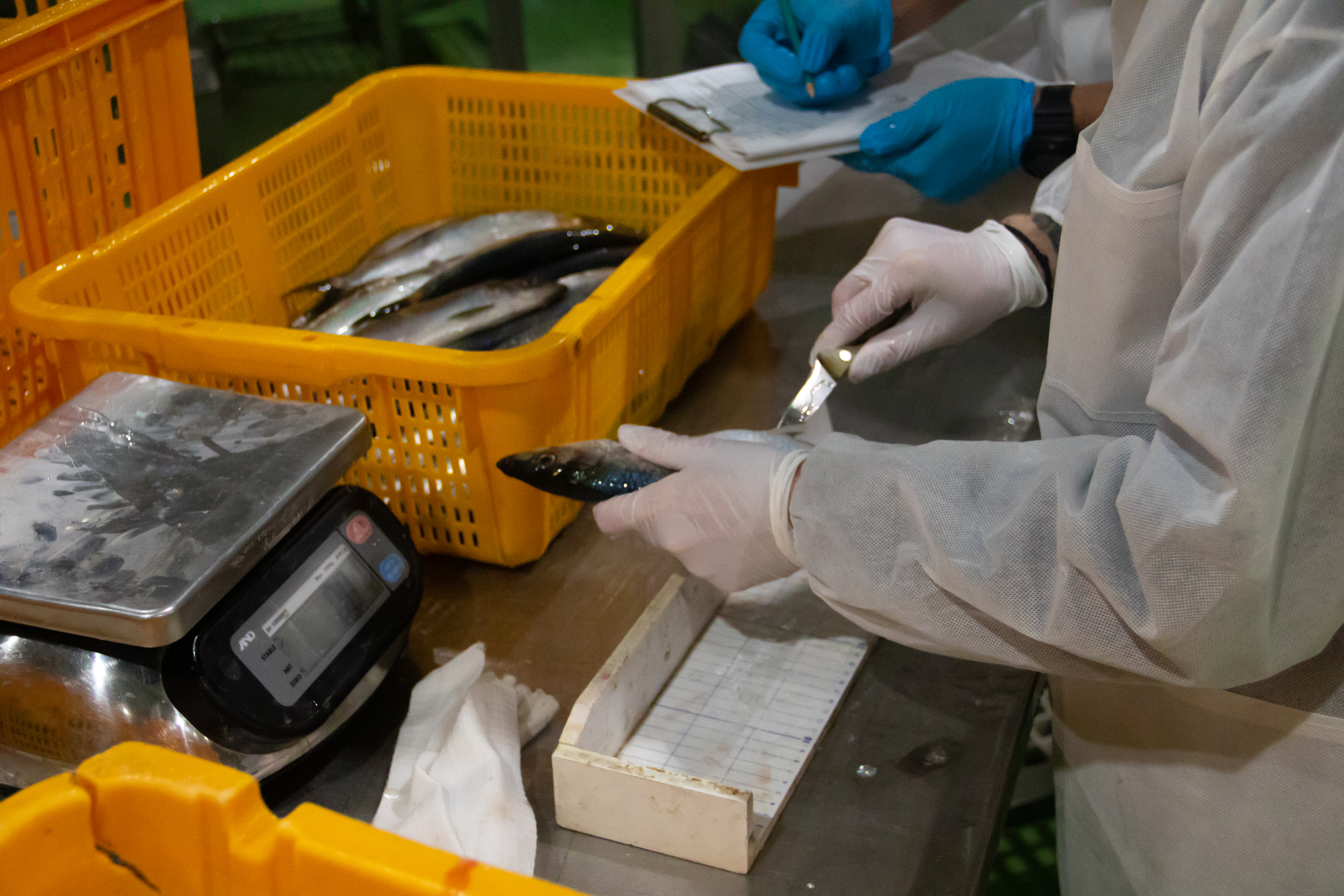 Сотрудники Сахалинского филиала ГНЦ РФ ФГБНУ «ВНИРО» «СахНИРО» провели исследования биологического состояния рыб из уловов рыбодобывающих судов ГК «Гидрострой». Работы осуществлялись в рамках договора о сотрудничестве с рыбоперерабатывающим комплексом «Озерский». В цехе предприятия научная группа выполнила массовые промеры и биологический анализ трески, минтая и сопутствующих видов. Особое внимание было уделено тихоокеанской сельди, которая массово подходит на нерест к берегам зал. Анива. По предварительным данным преднерестовые скопления сельди были представлены крупными старшевозрастными рыбами, длиной до 36 см. Полученные результаты будут использованы для разработки ОДУ и рекомендованных объемов вылова водных биоресурсов в зоне ответственности «СахНИРО».