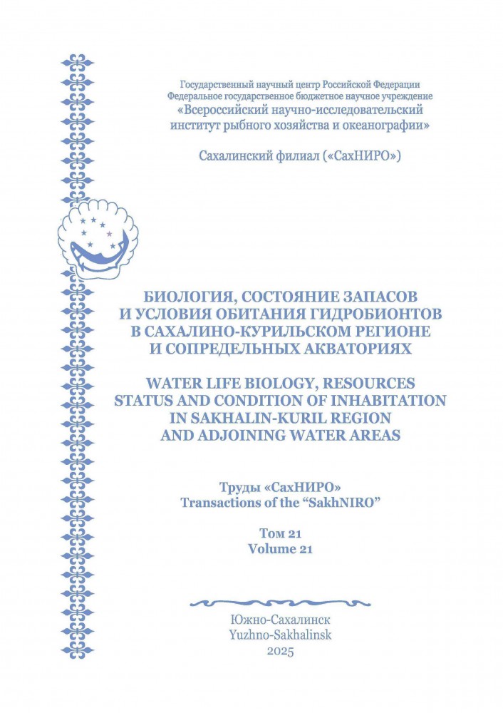 Биология, состояние запасов и условия обитания гидробионтов в Сахалино-Курильском регионе и сопредельных акваториях : Труды «СахНИРО». – Южно-Сахалинск : «СахНИРО», 2025. – Т. 21 – 248 с. – ISSN 2078-1814